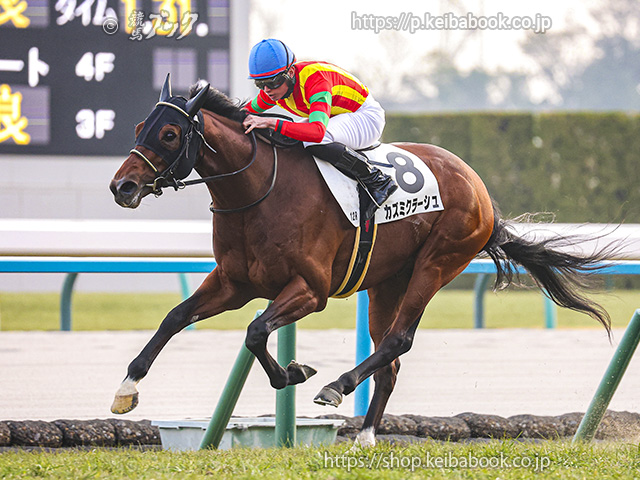 2列目の内で脚をため、直線はラチ沿いを突いての抜け出し。これ以上ない展開で鮮やかな見た目ほどの評価はしづらいが、1年2カ月のブランクのあと、鼻出血で更に休養して今回は馬体が20㌔増。もうひと締まり欲しい体つきを思えば、次走を順調に迎えればかなりの上積みが見込める。3歳時にGⅡニュージーランドT④着の実績から昇級の壁があるとは思いづらく、狙う価値は十分にある。(石井大)