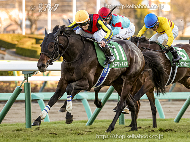 五十嵐 名伯楽・国枝師の引退に花を添えた勝ち馬チャーリーの独走劇が話題を集めたレースだが、この馬も離された②着同着ながら、初戦から自身の時計を2秒5も詰めており、他馬が仕掛けた時に動かず、一旦は好位に控えて直線で盛り返す、センスのいいレースぶりも目についた。2~3回中山の連続開催には今回と同じダ1800mの1勝クラスの番組も多く、順調なら2勝目を手にする日は近いと見た。(編集部デスク)