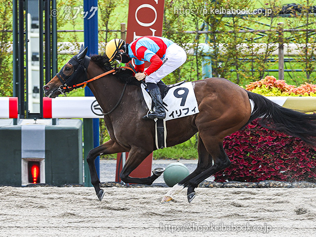 中団の外を追走。4角で外から進出し、勢いそのままに抜け出して2馬身差をつける完勝。初のダート戦で砂を被ったが気にする素振りもなく、鋭い決め手を発揮。どこからでも競馬ができそうだし、適性はかなり高い。昇級しても通用の器。(石井大)