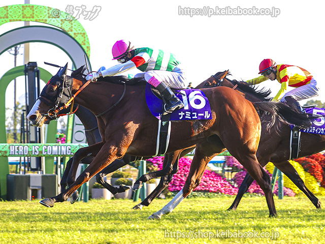 前半34秒3、46秒5─後半46秒0、34秒3のミドルペース。前半3ハロンは阪神開催を含めた過去10年で2番目に速く、その上でラスト11秒6─11秒5─11秒2の加速ラップ。GⅠらしい地力を問われたレースと言えるでしょう。序盤はセルバーグ、マテンロウオリオンがハナを叩く勢いでしたが、その外からバスラットレオンが押して押してハナへ。「少々ハイペースでも、この馬の好走パターンを貫こうと」と鮫島駿騎手。「今日は同型がいて厳しくなりました」と松山騎手。結局、この3頭が大きく着順を落としたことからもペースがかなり速かったことが窺えます。勝ったナミュールは後方2番手から。同じような位置にダノンザキッド、シュネルマイスターがいましたが、ちょっと決め手が違いました。ただ、ダノンザキッドはマイルの距離が合いますね。シュネルマイスターはルメール騎手が「ポイントはゲートだね」とコメントしていたようにスタートが悪かったですし、以前よりズブくなっているように見受けられます。また、この厳しい流れですから、3頭の中で一番外を回っていた点も最後の伸びに影響したと思われます。勝ち馬に話を戻すと、最後に手前を替えてからの弾け方は圧巻でした。「急きょの乗り替わりでしたが、これだけの馬ですからね。レースは見ていたし、陣営から話も聞いていました」と藤岡康太騎手は代打騎乗でしっかりと結果を出しました。外枠でしたが、コーナーであまり外を回さなかった点は良かったですし、直線でレッドモンレーヴを外に押し出して進路を作ったように馬自身も強くなっていました。