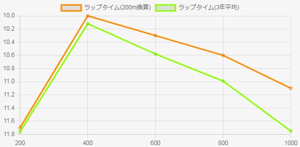 【展開・ペース】 4番ゲートに入ったがシロンが馬場の真ん中を通って先頭に立ちます。外からは快速テイエムスパーダがスピードに乗って前へ。前後半の2ハロンは21.7-21.7とイーブン。開幕2週目の馬場を考慮すると先行勢に有利なペースでした。