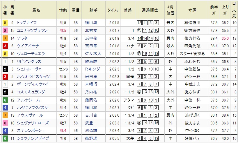【レース分析】 勝ったトップナイフ(10番人気)は膝蓋を手術した効果もあって、手替わりした今回もスタートは五分。出たなりで後方に下げるとスタンド前のうちに馬群の内へ進路を取り、向正面に入るとあまり気合をつけることもなく、手応え良く前へ進出。3~4コーナーでは好位のインまでポジションを上げ、ここから鞍上の手が動くと直線入り口では先行勢の間を割り、力強く抜け出して最後まで脚勢は乱れませんでした。