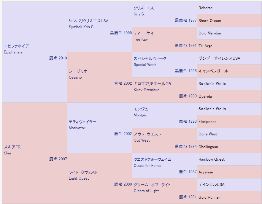 ▲フィロステファニの4代血統表